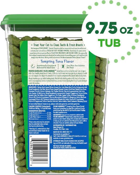 Feline Adult Dental Cat Treats, Tempting Tuna Flavor, 9.75 Oz. Tub